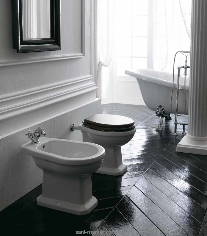 Для напольного монтажа со скрытым бачком, с подвесным бачком 8412 на низкой трубе или подвесным бачком 8410 на высокой трубе. Сиденье с крышкой в комплект не входят, подходит сиденье 8413 черного или белого цвета и сиденье 8414 в цвете орех.
