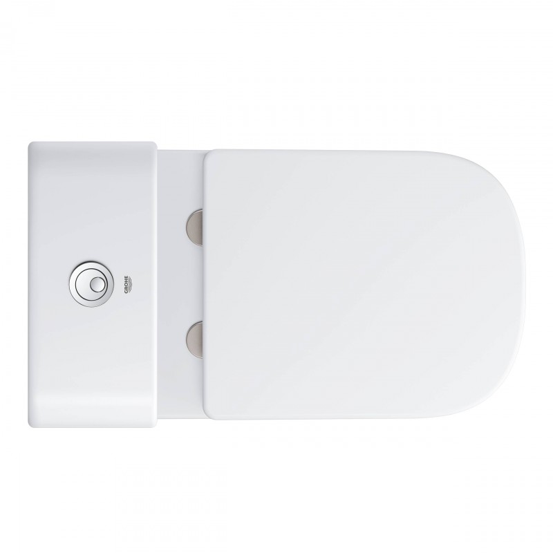 Напольный унитаз GROHE из серии Euro устанавливается в паре с внешним керамическим смывным бачком, который приобретается отдельно.