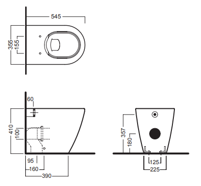 Унитаз с универсальным сливом без сливного кольца, с крепежом. Может быть укомплектован сиденьем с системой плавного закрывания крышки или с обычной крышкой.