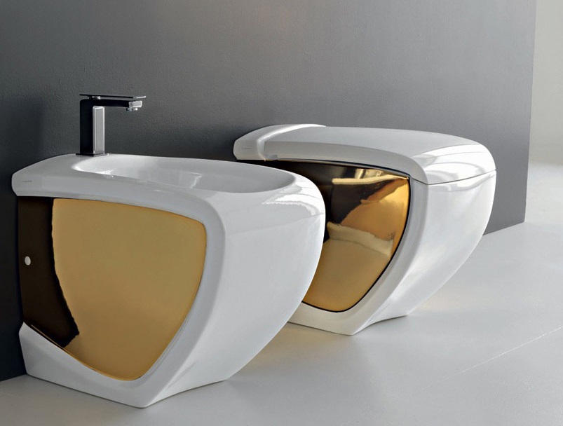 1) Унитаз напольный Hidra Hi-Line 38х54,5 см санфаянс белый/золото
