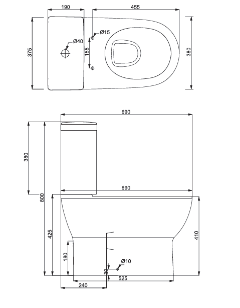 1) Унитаз напольный компакт Devit Fresh 38х69 см безободковый санфаянс белый