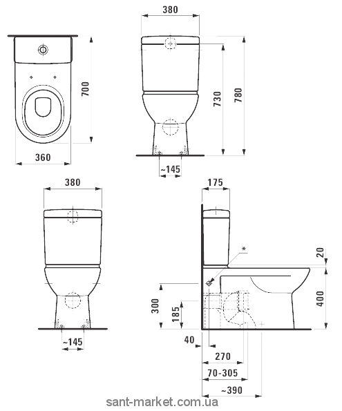 1) Чаша унитаза Laufen коллекция PRO 8.2495.8.000.000.1