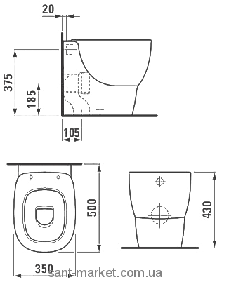Унитаз напольный приставной Laufen коллекция Mimo H8215510000001