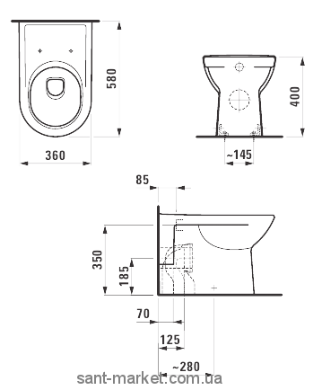 1) Чаша унитаза Laufen коллекция PRO 8.2295.1.000.000.1