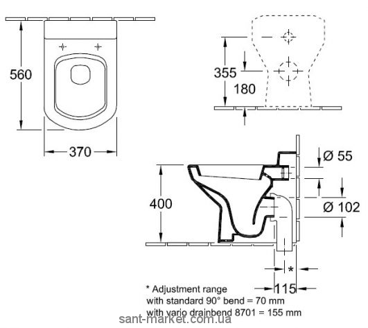 1) Чаша унитаза Villeroy & Boch коллекция Sentique 56241001