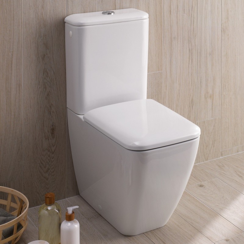 Унитаз напольный приставной Geberit iCon Square Rimfree воронкообразный закрытая форма санфарфор белый
