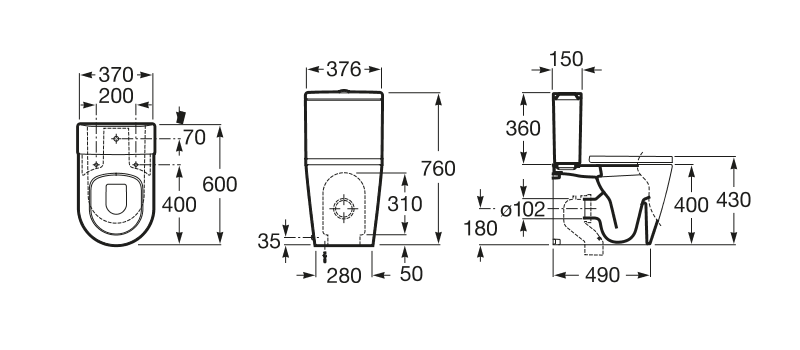 Чаша унитаза Roca Inspira Round 60х37 см с универсальным выпуском белый