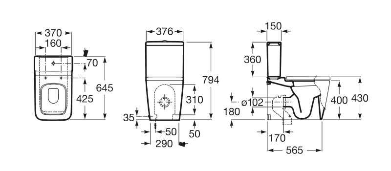Чаша унитаза Roca Inspira Square 64,5х37 см с универсальным выпуском белый
