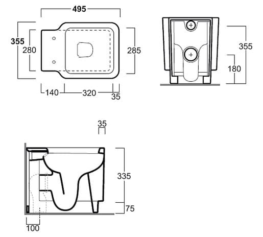 1) Унитаз напольный Simas Flow 35,5х49,5 см фаянс белый
