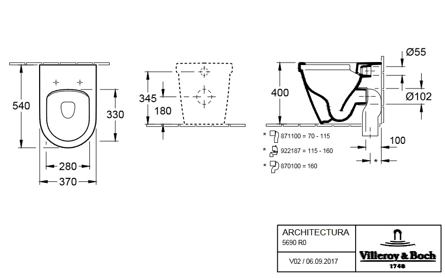 Унитаз напольный Villeroy & Boch Architectura 37х54 см санитарная керамика CeramicPlus альпийский белый 5690R0R1