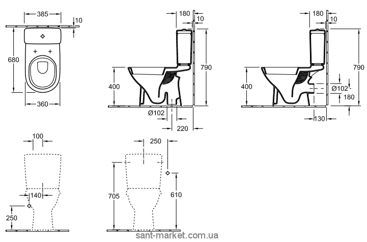 1) Чаша унитаза Villeroy & Boch коллекция O.Novo 56610101