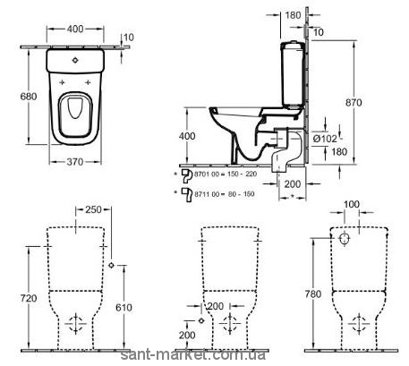 2) Сливной бачок Villeroy & Boch Joyce 57121101