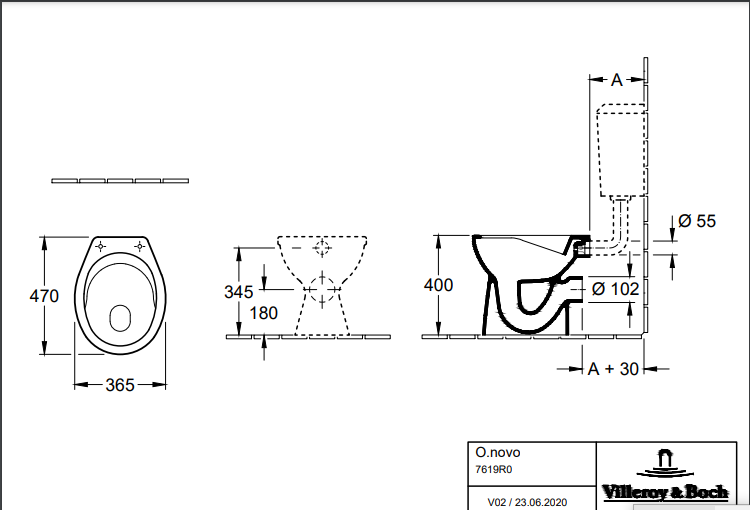Унитаз напольный Villeroy & Boch O.novo 36х55 см открытый смывной край альпийский белый 7618R101