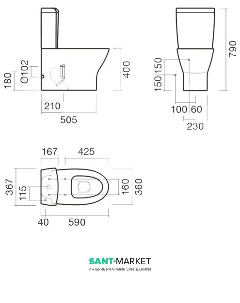 Размер унитаза с бачком (ВхГхШ): 790х590х367 мм