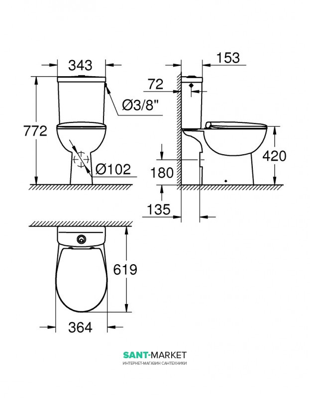 Спешите купить Унитаз напольный безободковый Grohe Bau Ceramic со смывным бачком и сиденьем (укороченный) альпин-белый 39347000 по акционной цене.