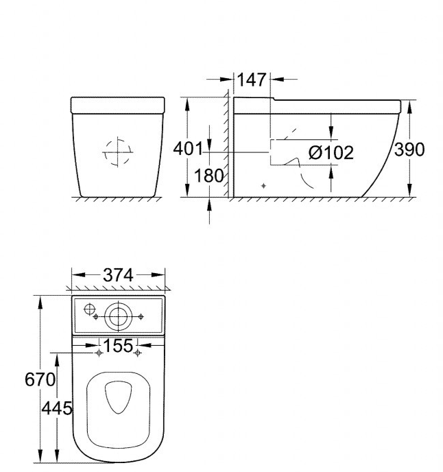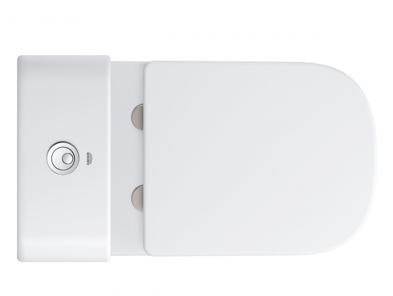 Напольный унитаз GROHE из серии Euro устанавливается в паре с внешним керамическим смывным бачком, который приобретается отдельно.