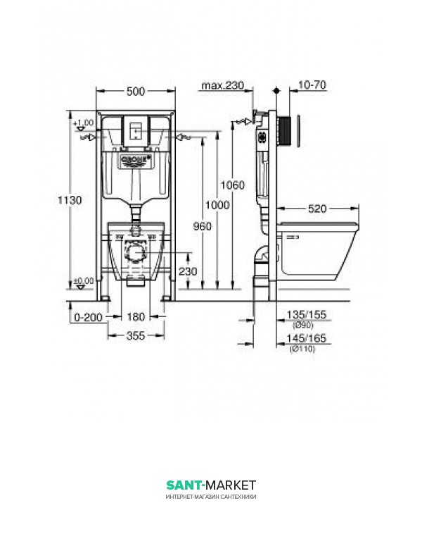 инсталляция Rapid SL в сборе, для подвесного унитаза