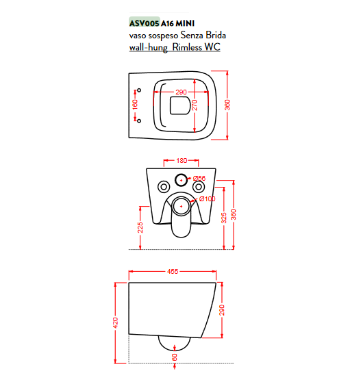 Унитаз подвесной ArtCeram A16 Mnini 36х45,5 см чёрный глянцевый ASV005 03;00