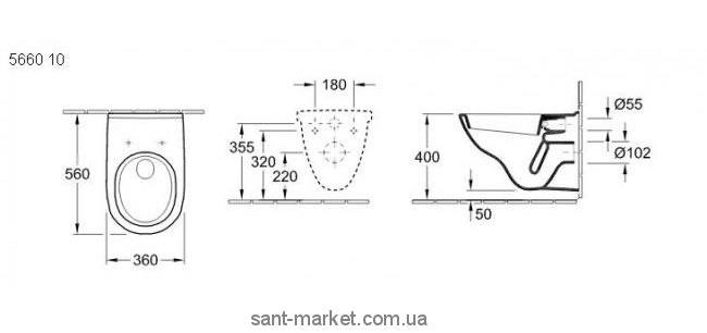 1) Унитаз подвесной Villeroy & Boch O.Novo 5660H101