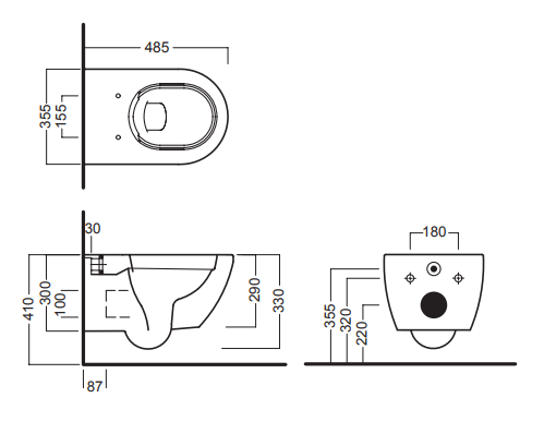 Унитаз подвесной без сливного кольца в комплекте со специальным крепежом. Установка с универсальным кронштейном для подвесной сантехники. Может быть укомплектован сиденьем. Без боковых отверстий.