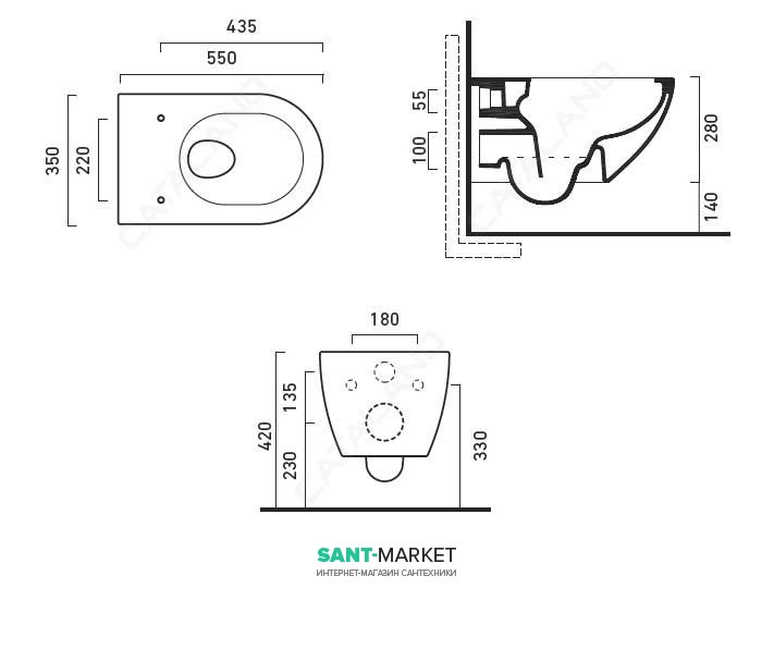 Чаша унитаза Catalano SFERA подвесной безободковый 35х54 см серый матовый 1VSF54RGS
