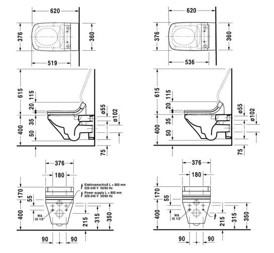 1) Унитаз подвесной Duravit DuraStyle Rimless 37,6х62 см керамика белый