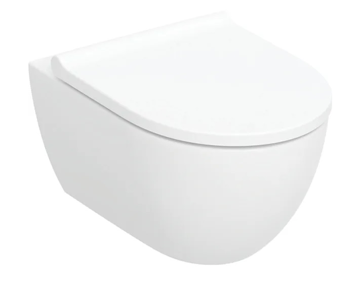 - Керамический унитаз без ободка с технологией смыва TurboFlush