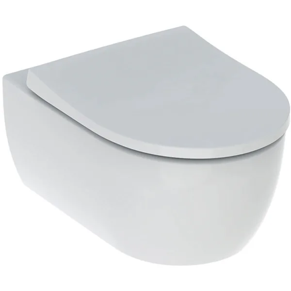 Унитаз подвесной Geberit iCon Rimfree воронкообразный закрытая форма санфарфор с сиденьем белый