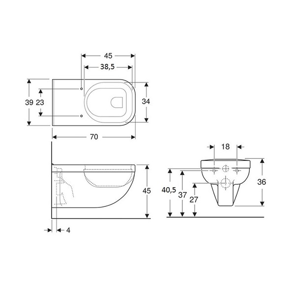 Унитаз подвесной Geberit Selnova Comfort Square 39х70 см фарфор белый 500.792.01.1