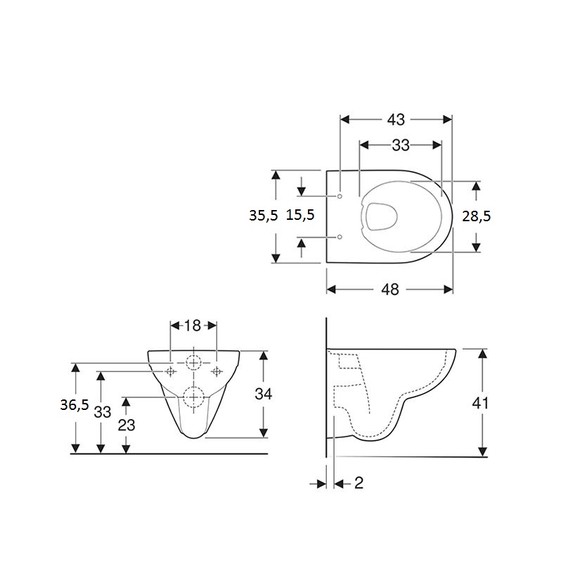 1) Унитаз подвесной Geberit Selnova Compact безободковый 35,5х48 см фарфор белый