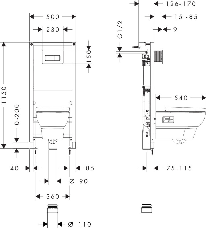 Унитаз подвесной Hansgrohe GladeLake S 36х54 см с инсталляцией кнопкой и сиденьем с крышкой керамика белый 60301450