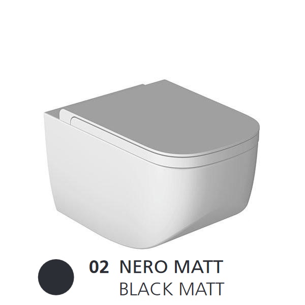 Унитаз подвесной безободковый HATRIA NEXT, размер 56x36 см, цвет чернгый матовый. Унитаз подвесной без сливного кольца в комплекте со специальным крепежом. Установка с универсальным кронштейном для подвесной сантехники. Может быть укомплектован сиденьем с системой плавного закрывания крышки (приобретается отдельно).