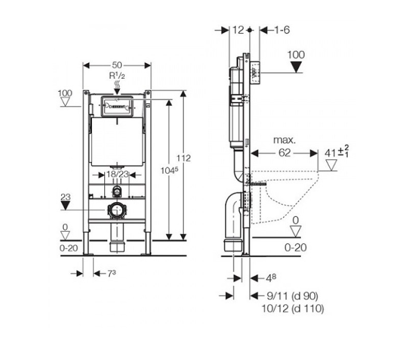 - для крепления монтажного элемента Geberit Duofix для подвесного унитаза со смывным бачком Delta 12 см (UP182) на капитальной или гипсокартонной стене