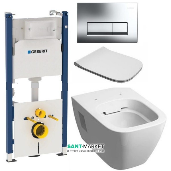 Унитаз подвесной Kolo Modo Rimfree с сидением инсталляцией Geberit Duofix Delta и клавишей смыва Delta 51 хром глянцевый
