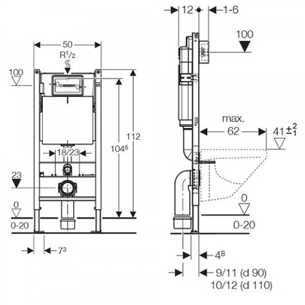 - Для использования со смывным бачком скрытого монтажа Geberit Delta 12 см (UP182)