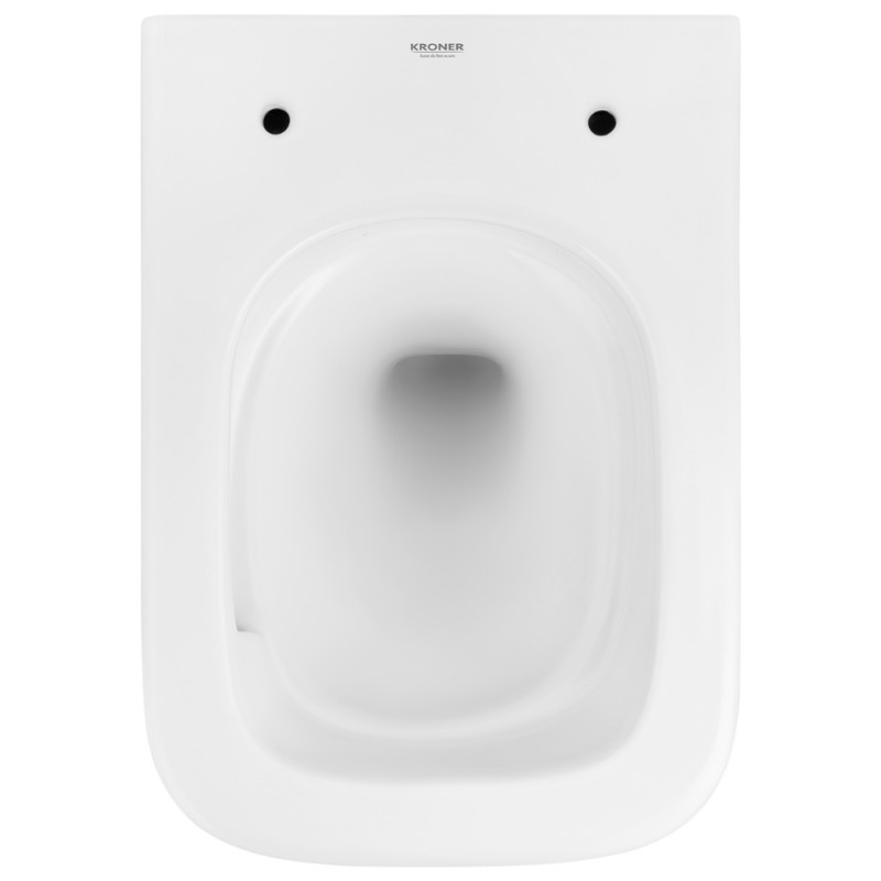 Подвесной безободковый унитаз Kroner Eifel WHI493436 TORNADO с сиденьем<br>Стиль. Гигиена. Инновации.<br>Kroner Eifel WHI493436 TORNADO – это подвесной безободковый унитаз, который сочетает в себе современный дизайн, простоту ухода и передовые технологии смыва.<br><br>Основные преимущества:<br>- Компактность и эргономика – размеры 340 × 360 × 490 мм подходят даже для небольших ванных комнат.<br>- Безободковая конструкция – максимальная гигиеничность и удобство в уходе.<br>- Система смыва TORNADO – мощный поток воды обеспечивает эффективное очищение без разбрызгивания.<br>- Горизонтальный выпуск – удобство монтажа с инсталляцией.<br>- Высококачественный фаянс – устойчив к загрязнениям, влаге и неприятным запахам.<br>- Сиденье Slim Duroplast – легкость и прочность, система Soft-Close для плавного закрывания, механизм Quick Release для быстрого снятия и очистки.<br>- Антибактериальное покрытие – предотвращает размножение бактерий и сохраняет белизну поверхности.<br>- Гарантия – 120 месяцев на унитаз, 24 месяца на сиденье.<br><br>Почему выбирают Kroner Eifel WHI493436 TORNADO?<br>- Современный дизайн, который впишется в любой интерьер.<br>- Простая и надежная установка.<br>- Высокий уровень комфорта и долговечность.<br><br>Выбирайте Kroner Eifel WHI493436 TORNADO – унитаз, который сочетает эстетику и функциональность!