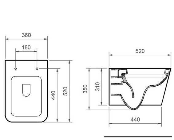 1) Унитаз подвесной Ponsi Wave Rimless 36х52 см керамика белый глянец