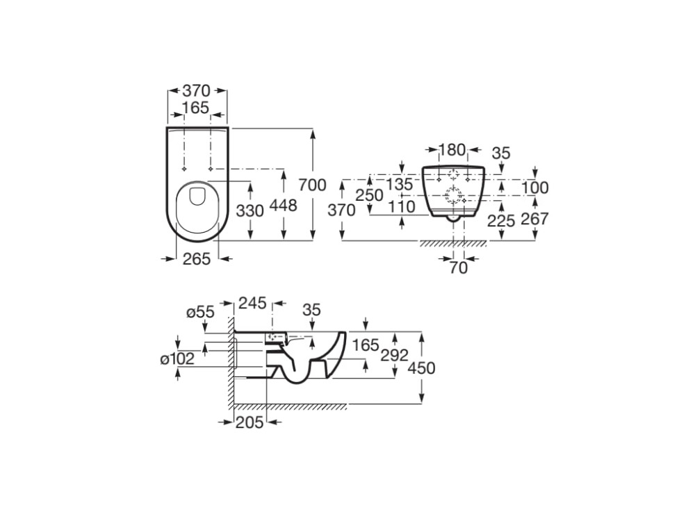 Унитаз подвесной Roca Access 37х70 см фарфор белый A346236000