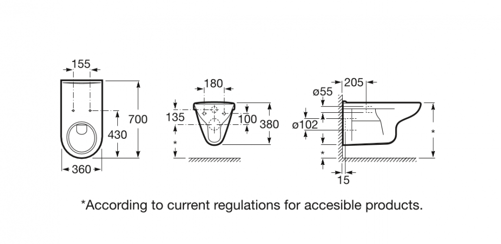 Унитаз подвесной Roca Access 70х36 с горизонтальным выпуском керамика белый A346237000