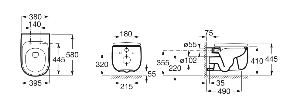 1) Унитаз подвесной Roca Beyond Rimless 58х39.5 с горизонтальным выпуском керамика белый