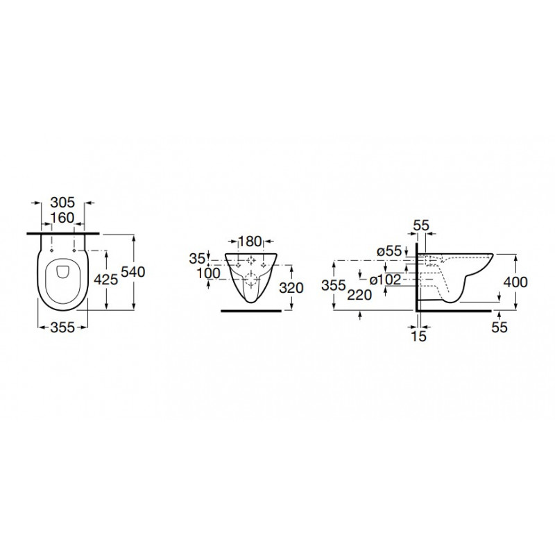 1) Унитаз подвесной Roca Debba Round Rimless с горизонтальным выпуском керамика белый