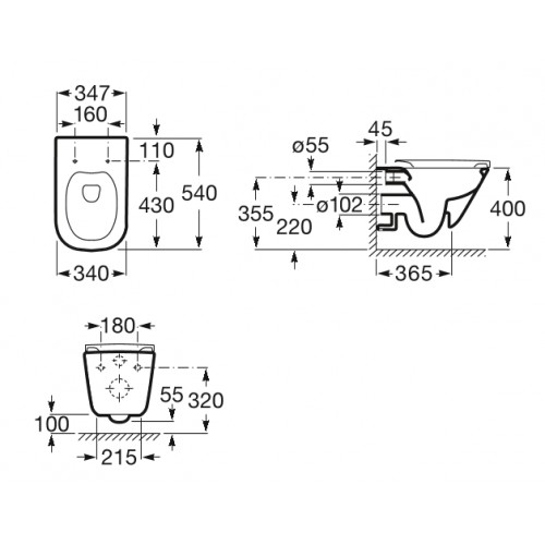 Представленный здесь подвесной, безободковый унитаз A34H470000 серии Gap от Roca представляет собой чашу с горизонтальным сливом, поставляемую с тонким дюропластовым сиденьем с функцией плавного закрывания Soft Close.