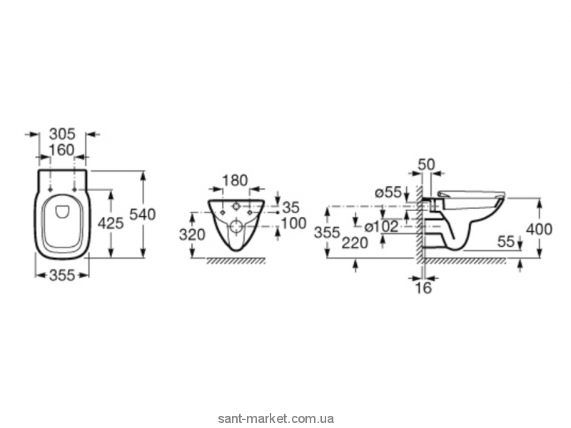 1) Чаша унитаза Roca коллекция Debba A346997000