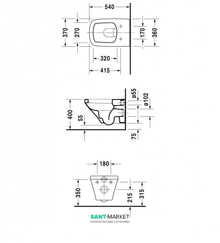 1) Унитаз подвесной скрытое крепление Duravit DuraStyle 54х37 см белый 2552090000