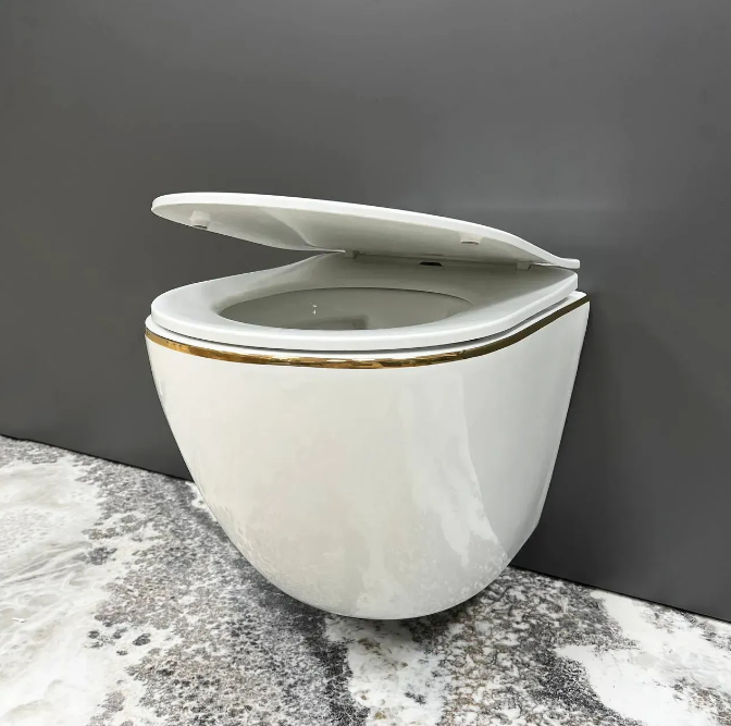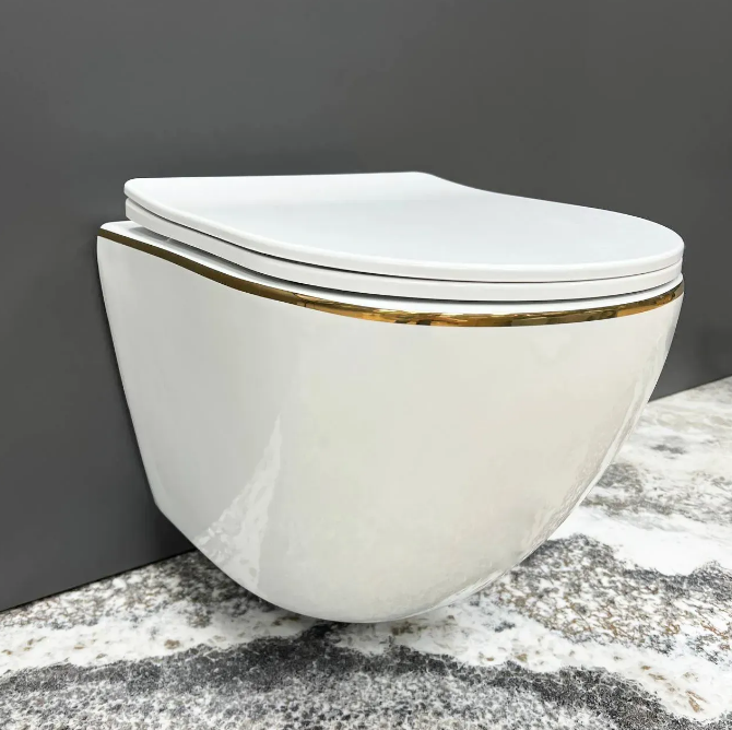 Унитаз подвесной VBI VULCANO 48х36 см безободковый с крышкой soft-close керамика белый/золотой VBI-020402