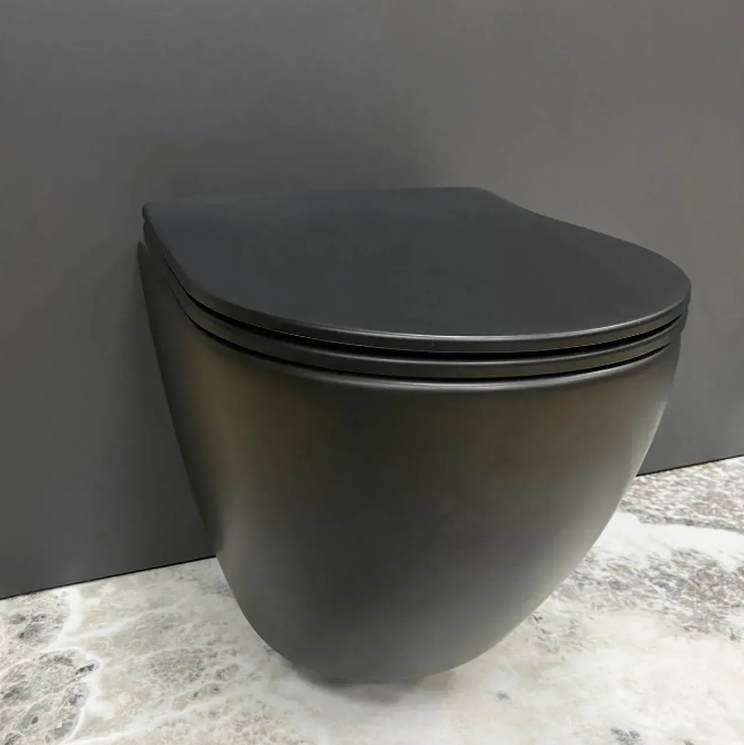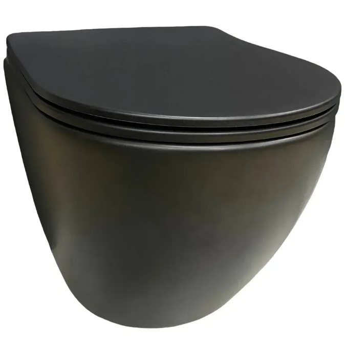 Унитаз подвесной VBI VULCANO 49х37 см безободковый с крышкой soft-close керамика черный матовый