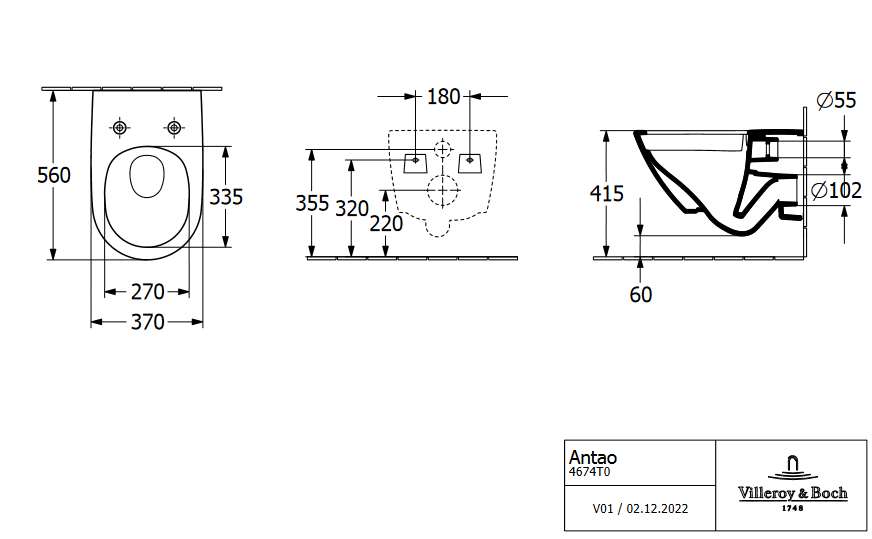 Унитаз подвесной Villeroy & Boch Antao 37х56 см санитарная керамика CeramicPlus альпийский белый 4674T0R1