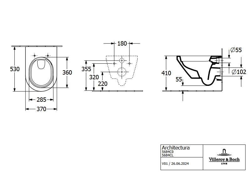 Унитаз подвесной Villeroy & Boch Architectura 37х53 см с крышкой санитарная керамика альпийский белый 5684CL01