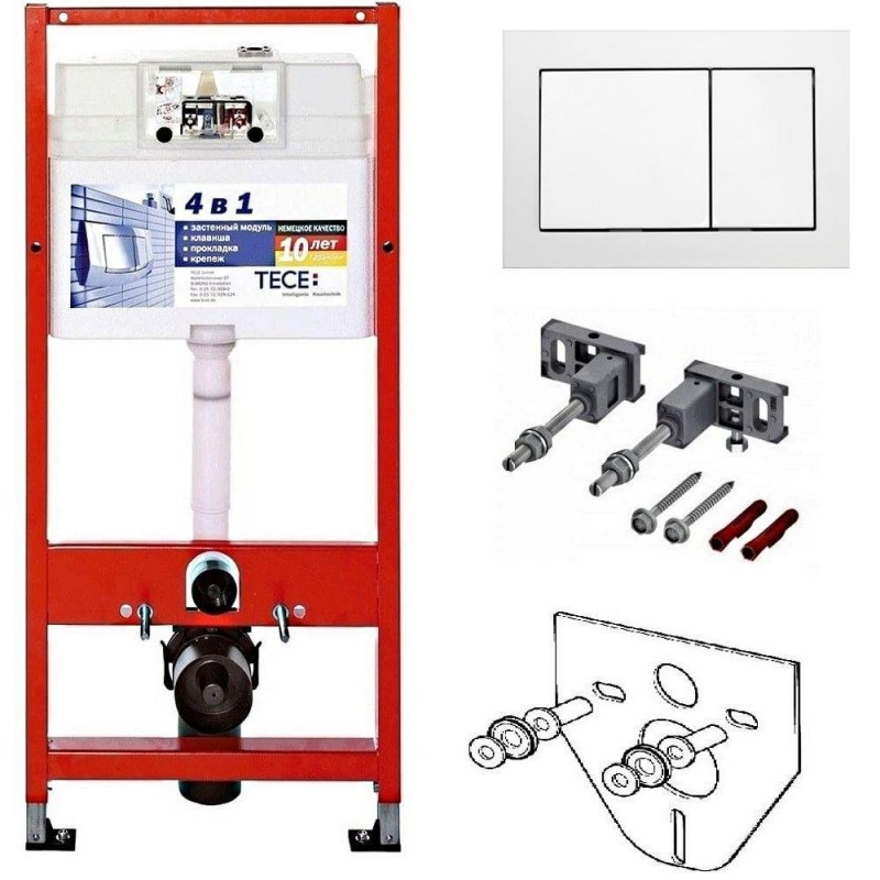 2) Комплект 4 в 1 TeceBase 9400006 (инсталляция для унитаза + кнопка хром глянец 9.240.701 TeceBase + прокладка + крепление)