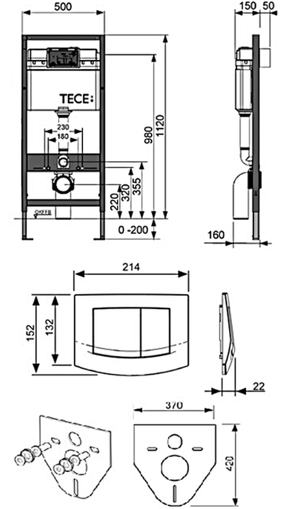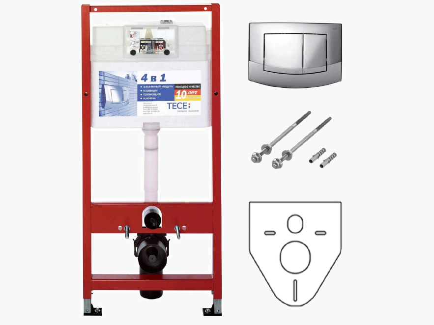 2) Комплект 4 в 1 TeceBase 9400005 (инсталляция для унитаза + кнопка хром глянец 9.240.701 TeceBase + прокладка + крепление)